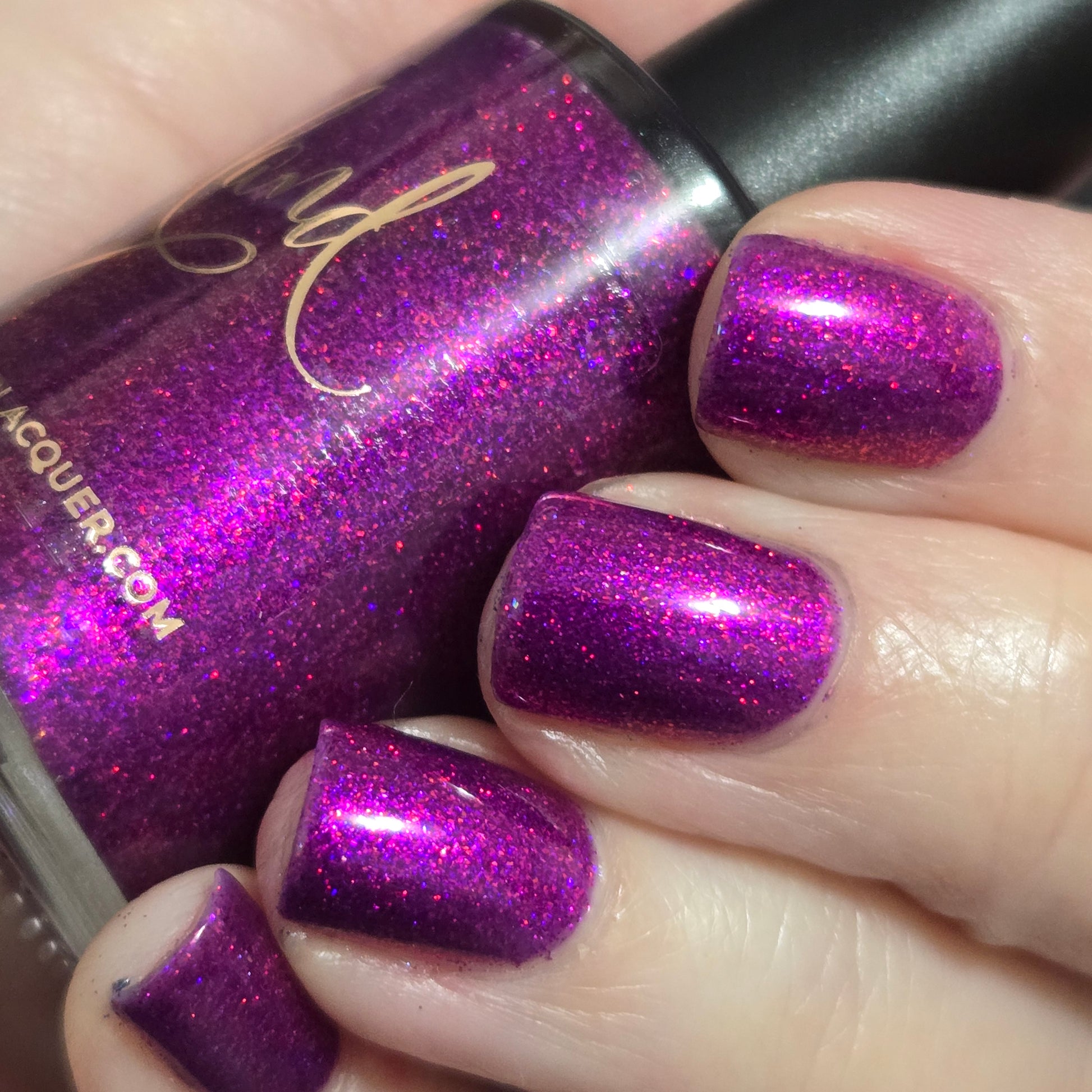 Purple jelly base filled with blue and purple microflakes and blue and purple holographic microglitter. Dries textured - we recommend the use of a glitter smoothing topcoat, plus a high-quality topcoat is always recommended for maximum shine and wear. No staining reported.
