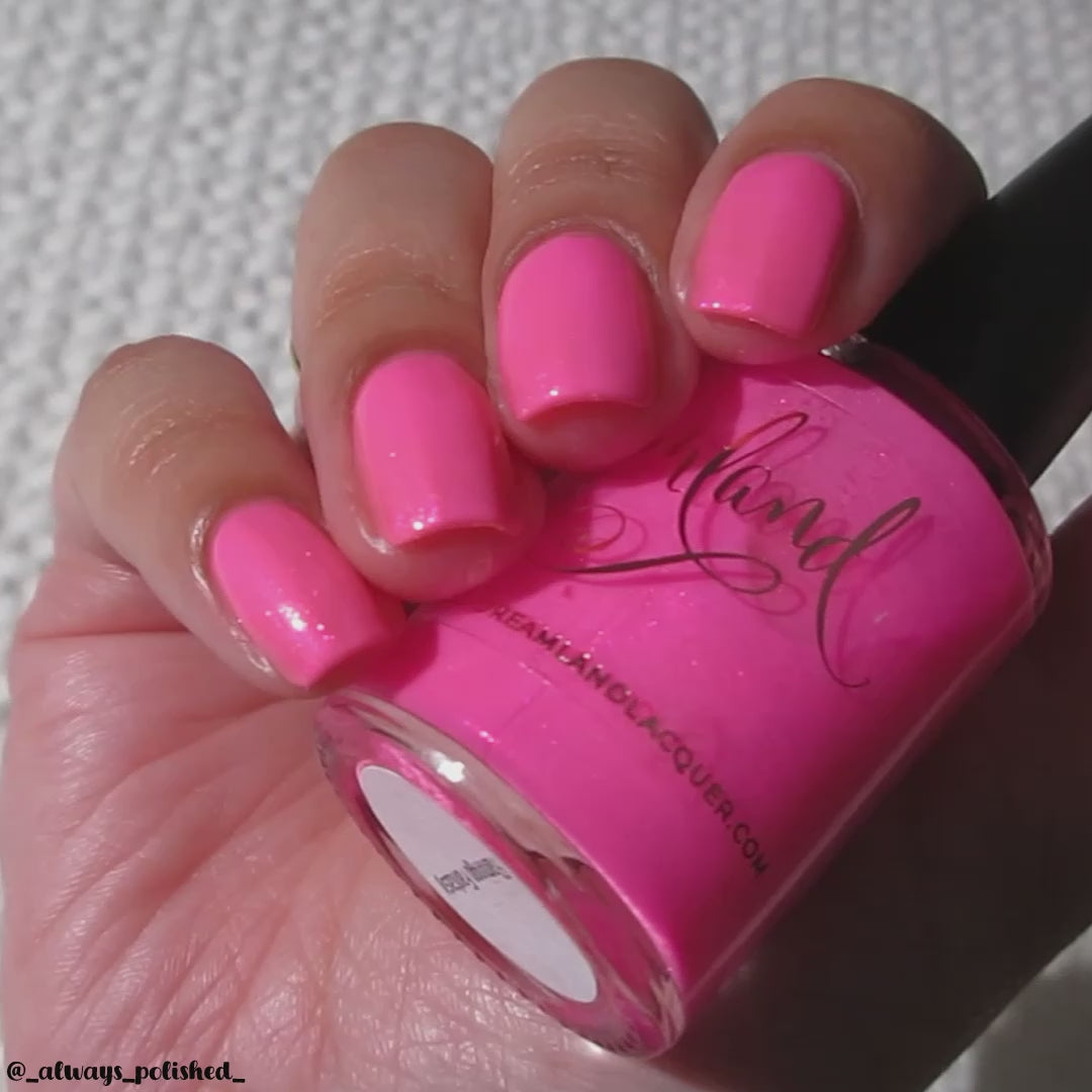 Bleached neon pink crelly base with pink/gold very fine shimmer. Note that the shimmer in this one is extremely subtle (mainly for a little depth and a better formula) and in a lot of lights will look more like a creme.