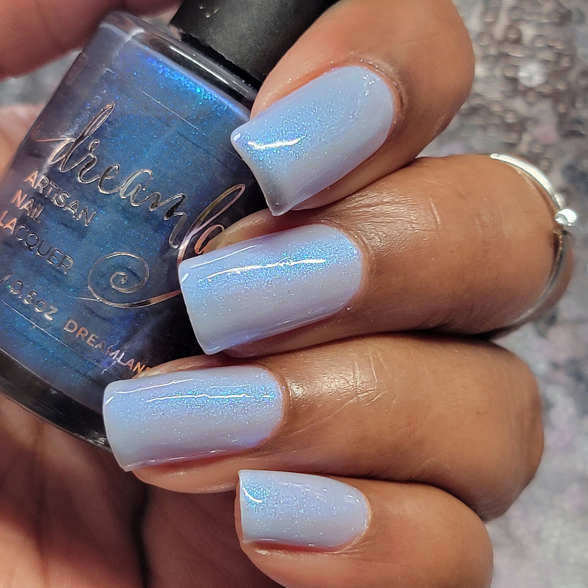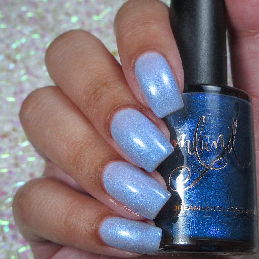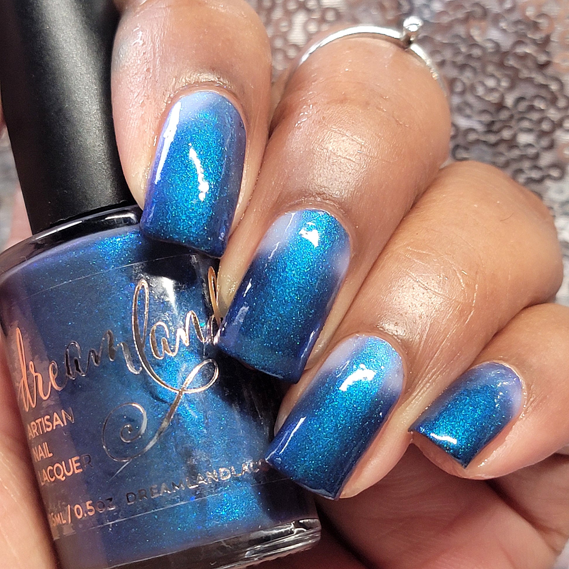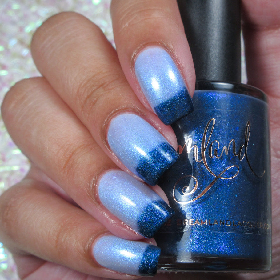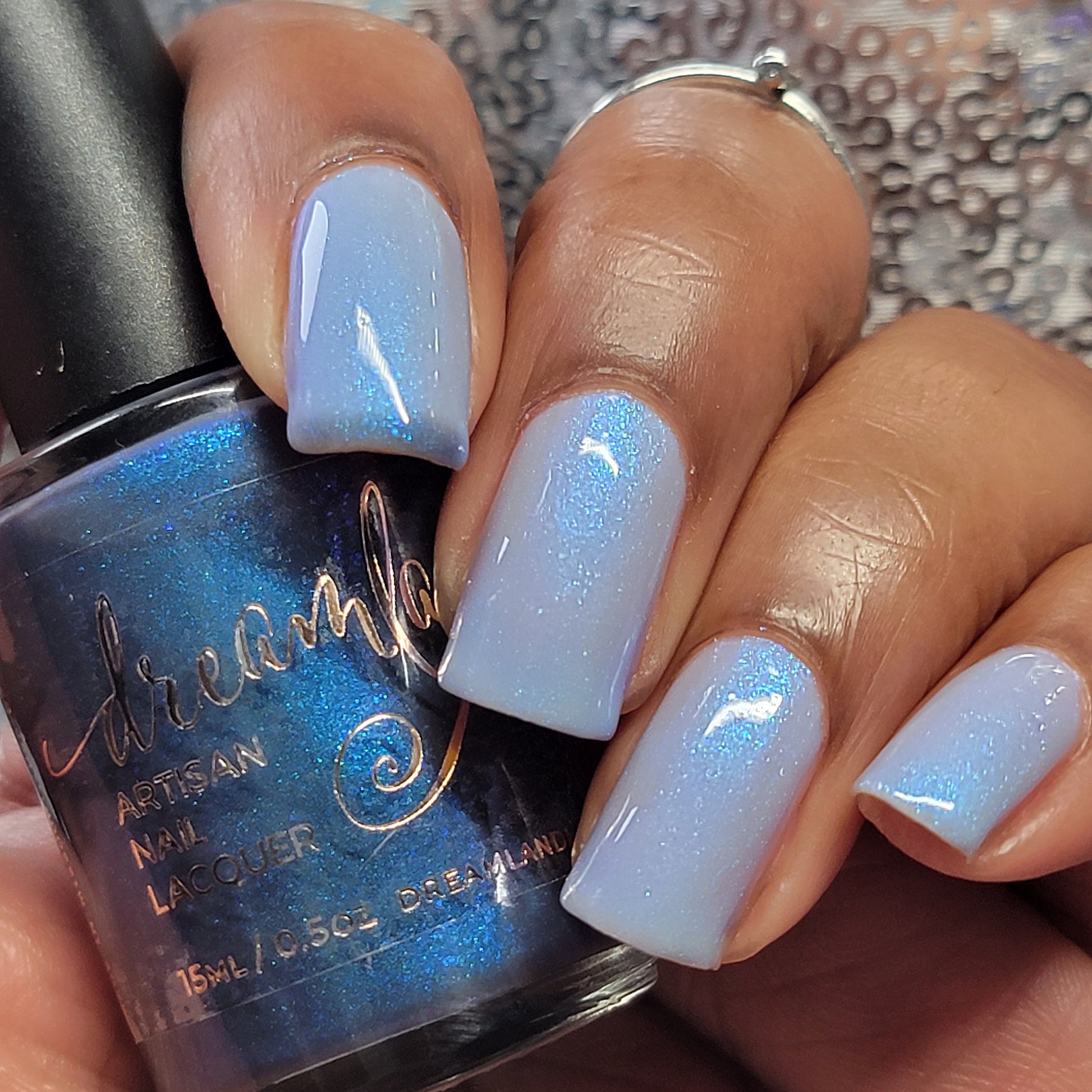 Inspired by my favorite and oldest literary boyfriend, Lestat de Lioncourt, in the series Interview with the Vampire, Very light blue to dark blue thermal filled with blue / violet shifty pigments and tiny iridescent flakes.