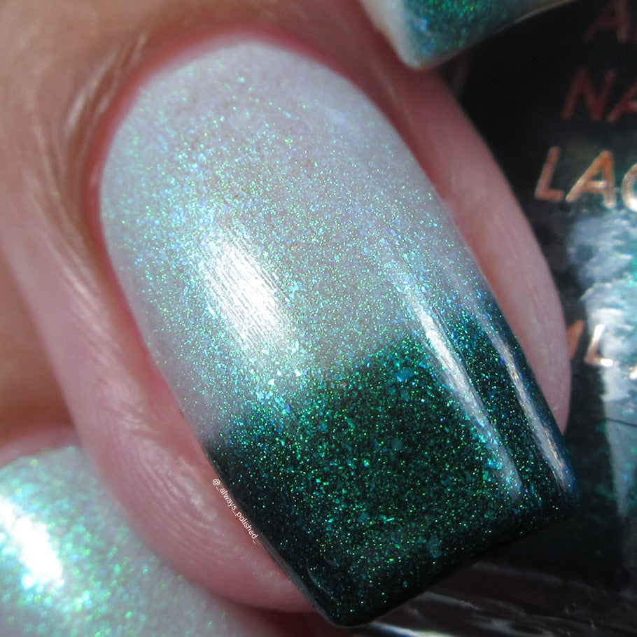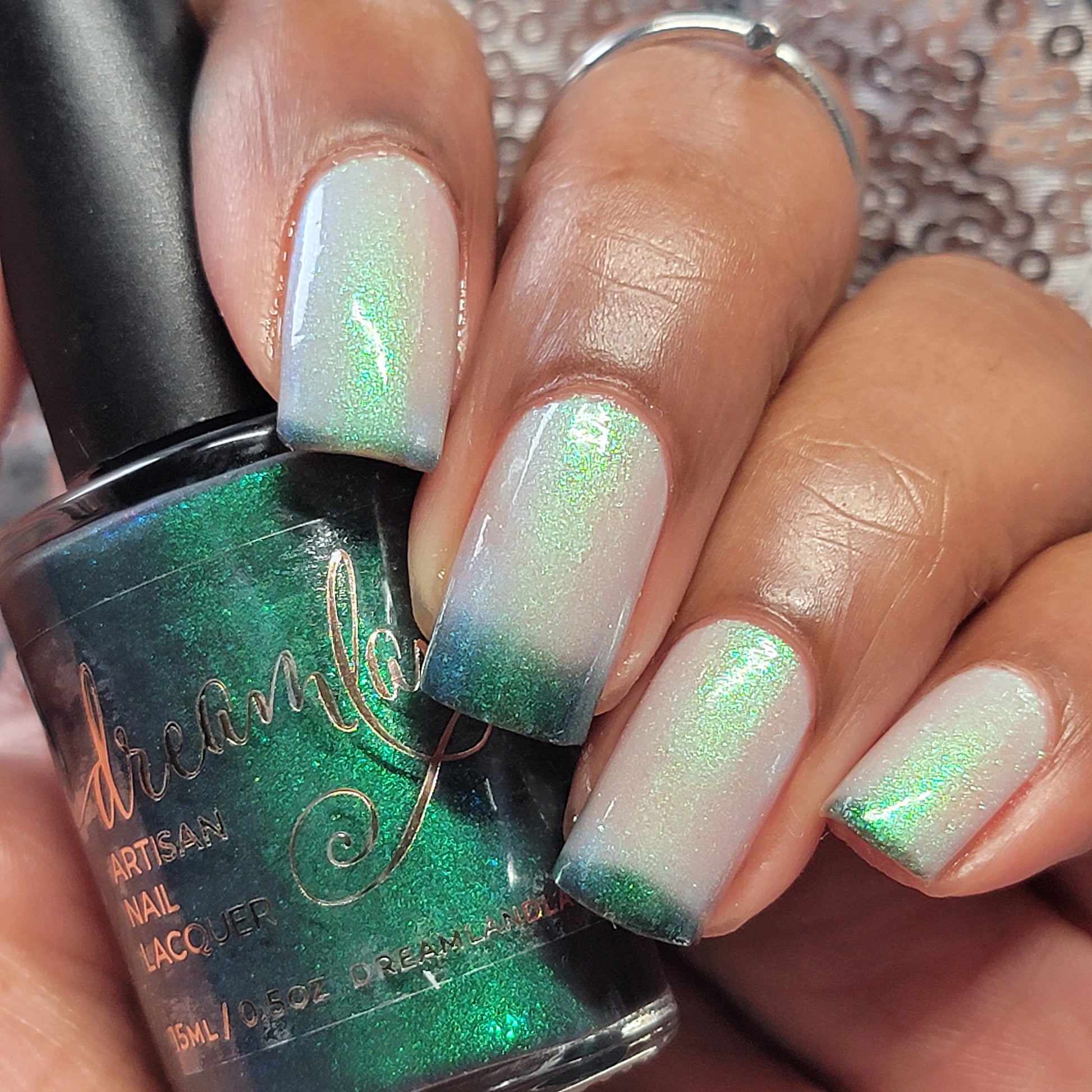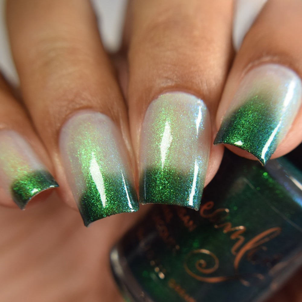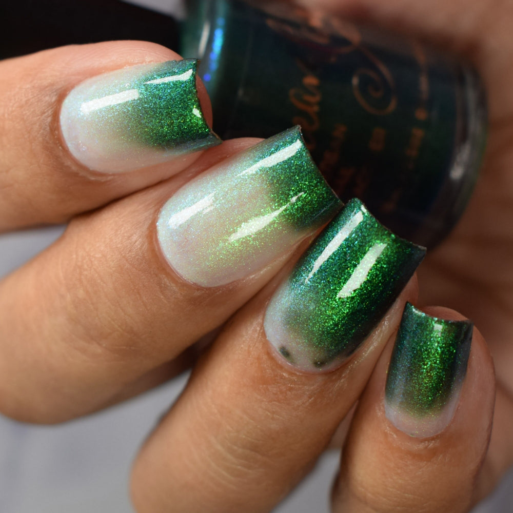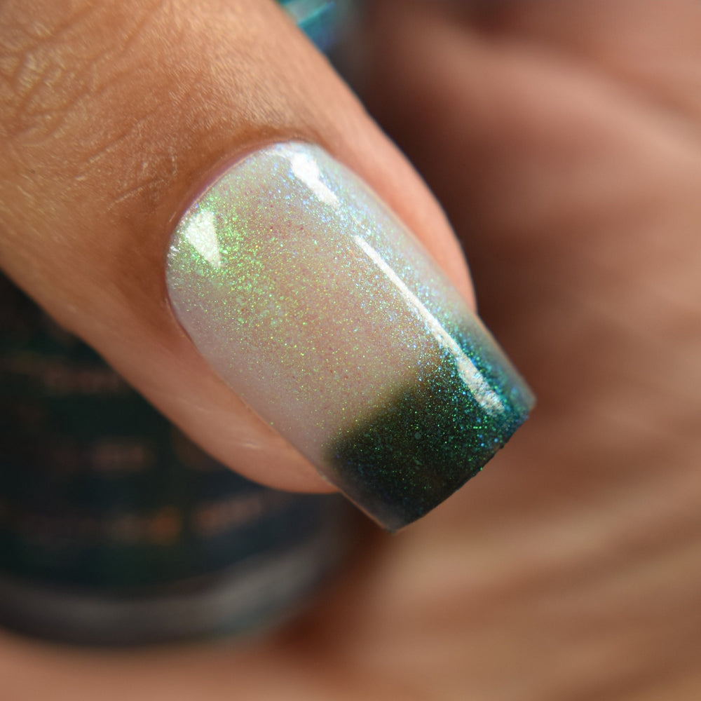 Inspired by Louis de Pointe du Lac in the series Interview with the Vampire, Very light green to dark green thermal filled with green / purple shifty pigments and tiny iridescent flakes.