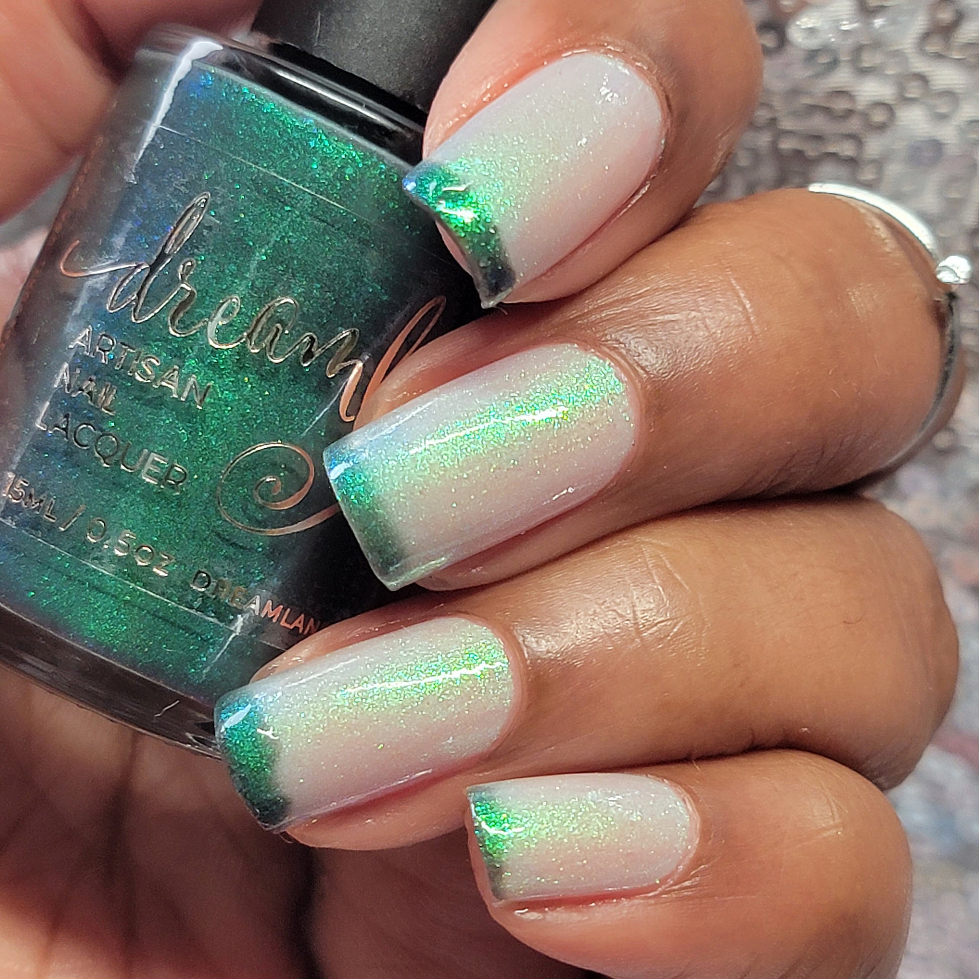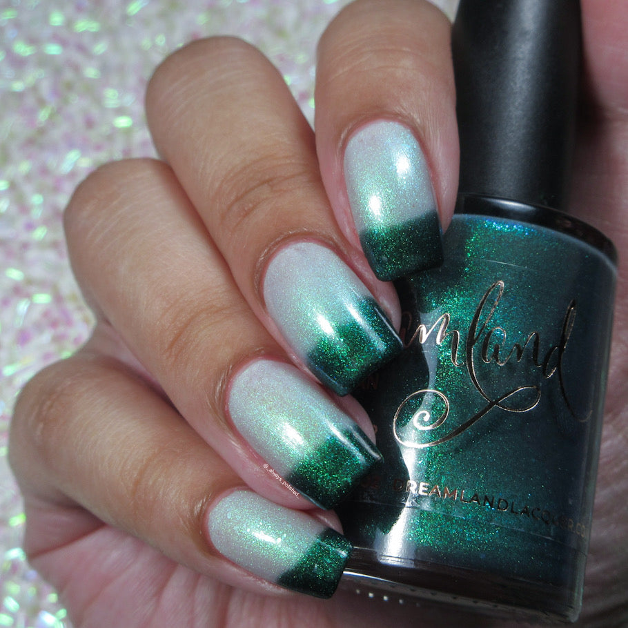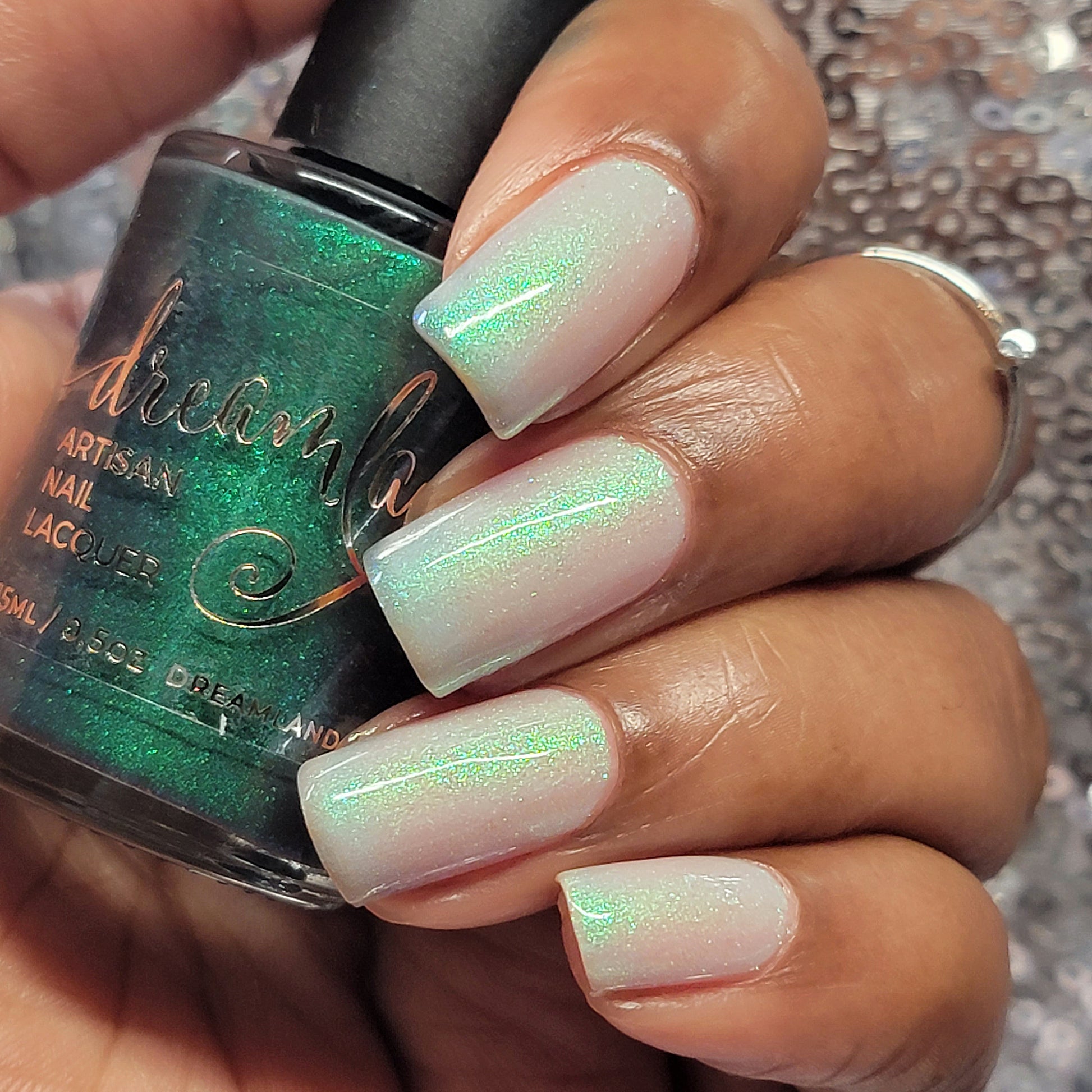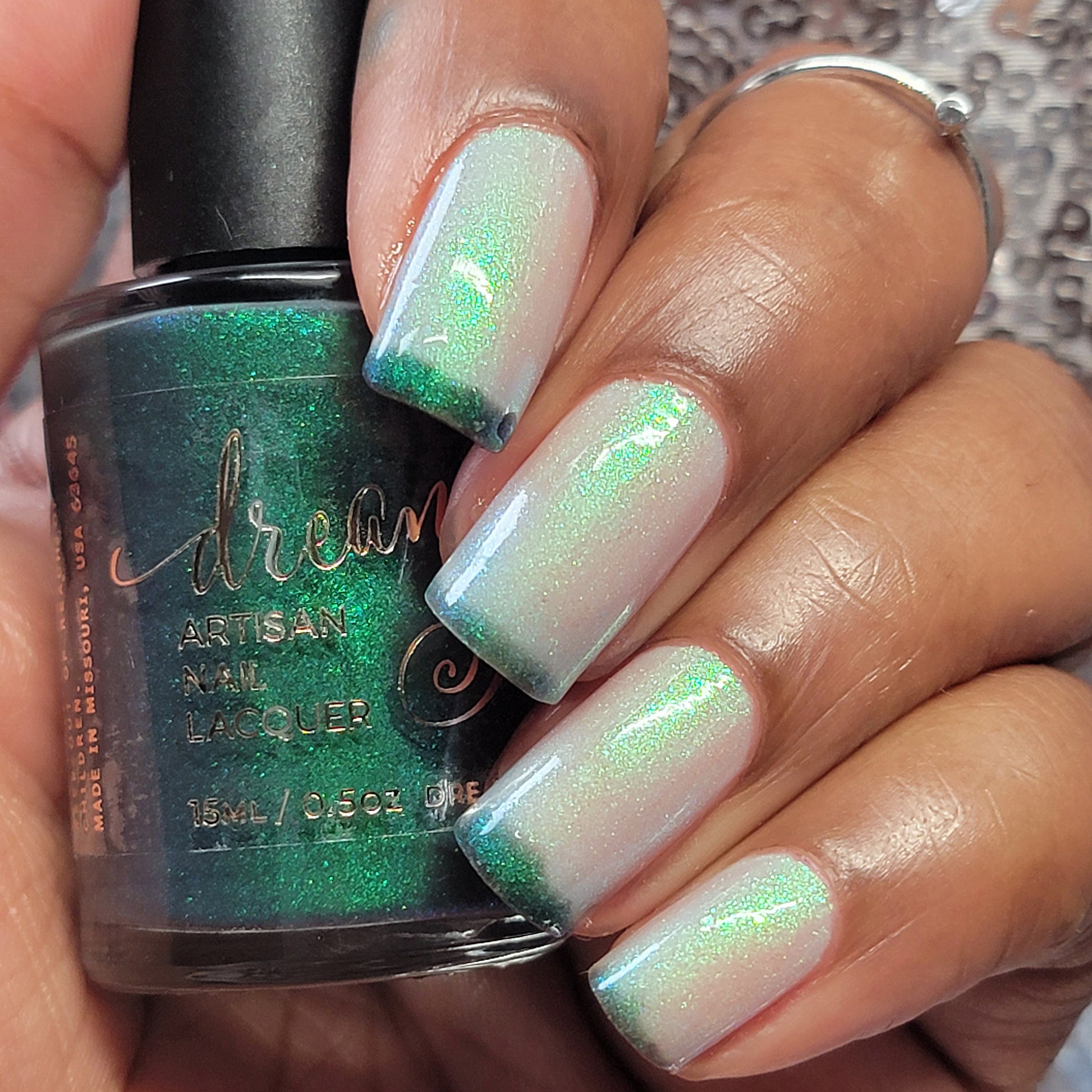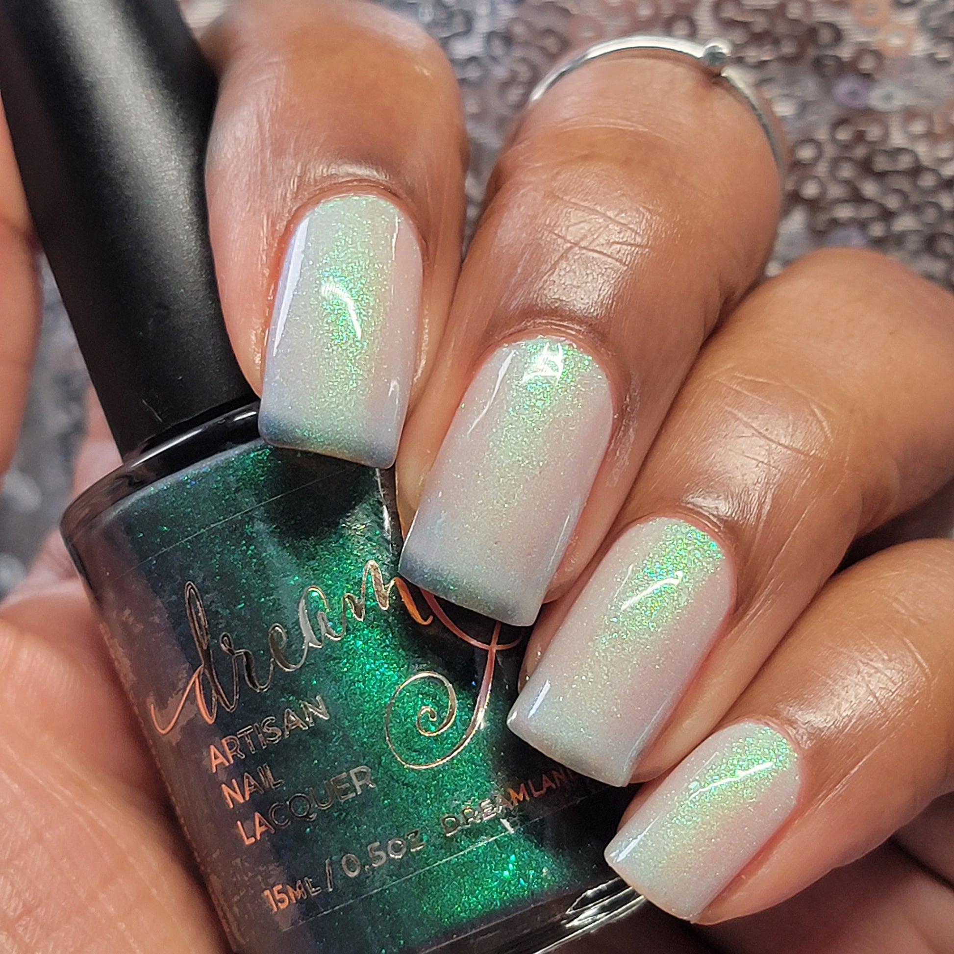 Inspired by Louis de Pointe du Lac in the series Interview with the Vampire, Very light green to dark green thermal filled with green / purple shifty pigments and tiny iridescent flakes.