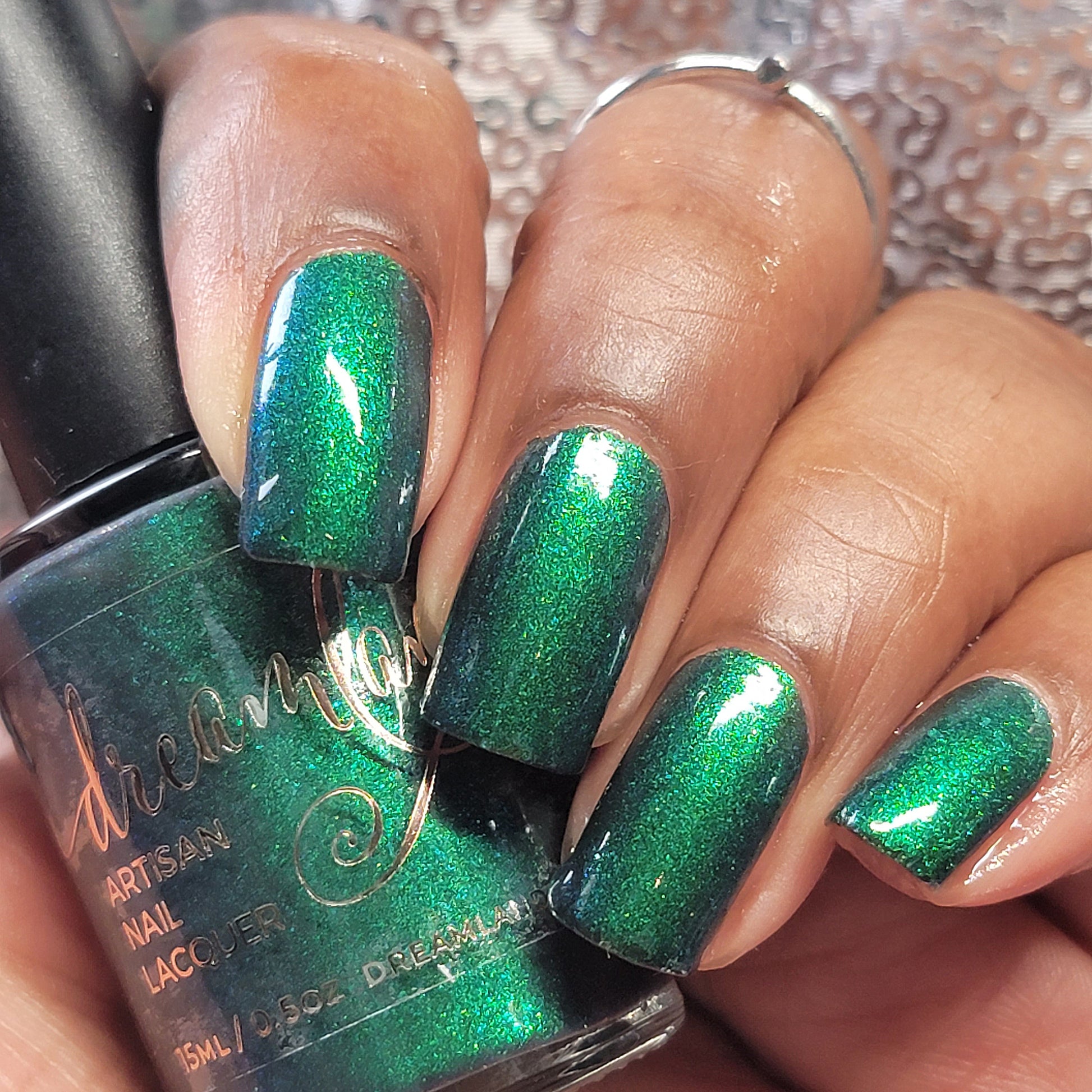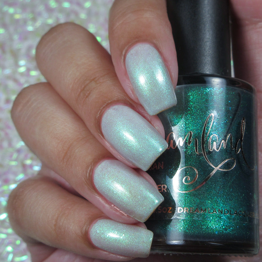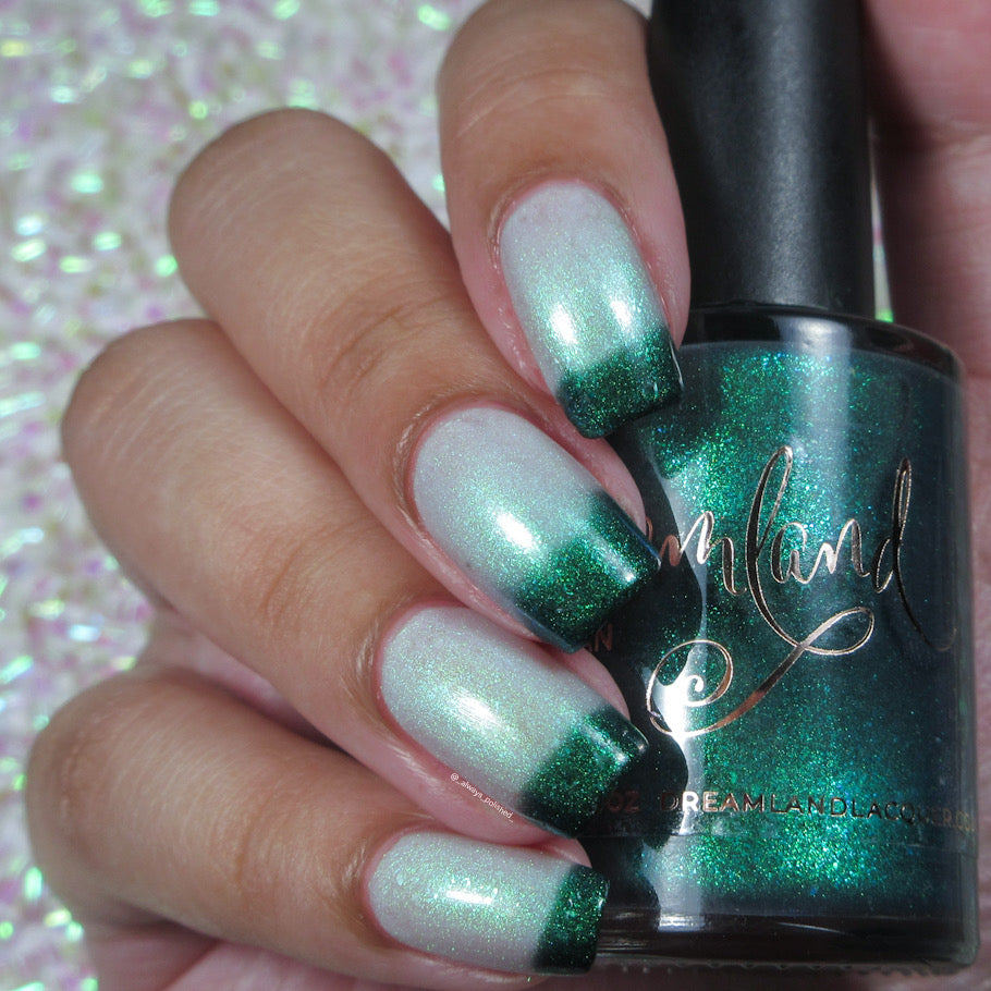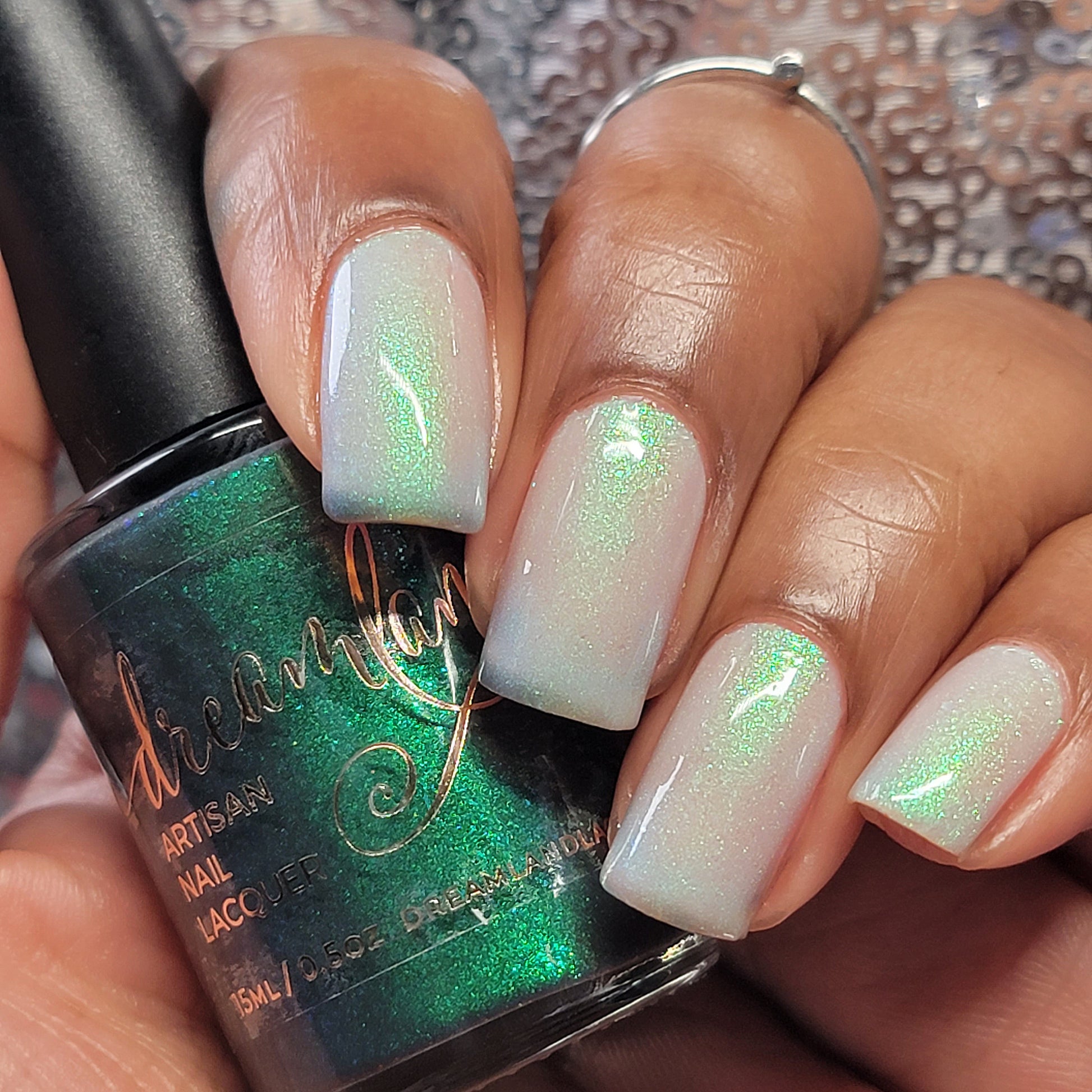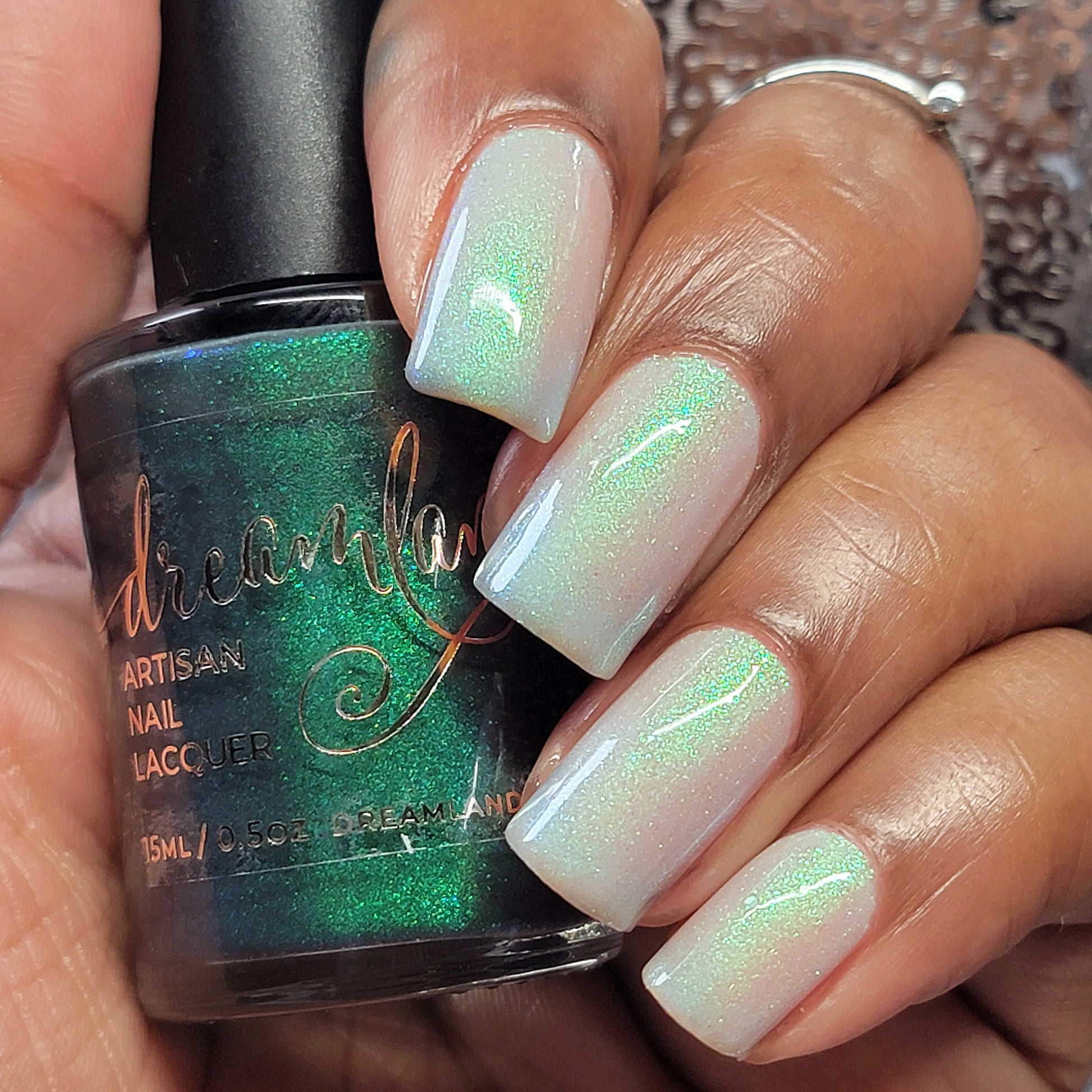 Inspired by Louis de Pointe du Lac in the series Interview with the Vampire, Very light green to dark green thermal filled with green / purple shifty pigments and tiny iridescent flakes.
