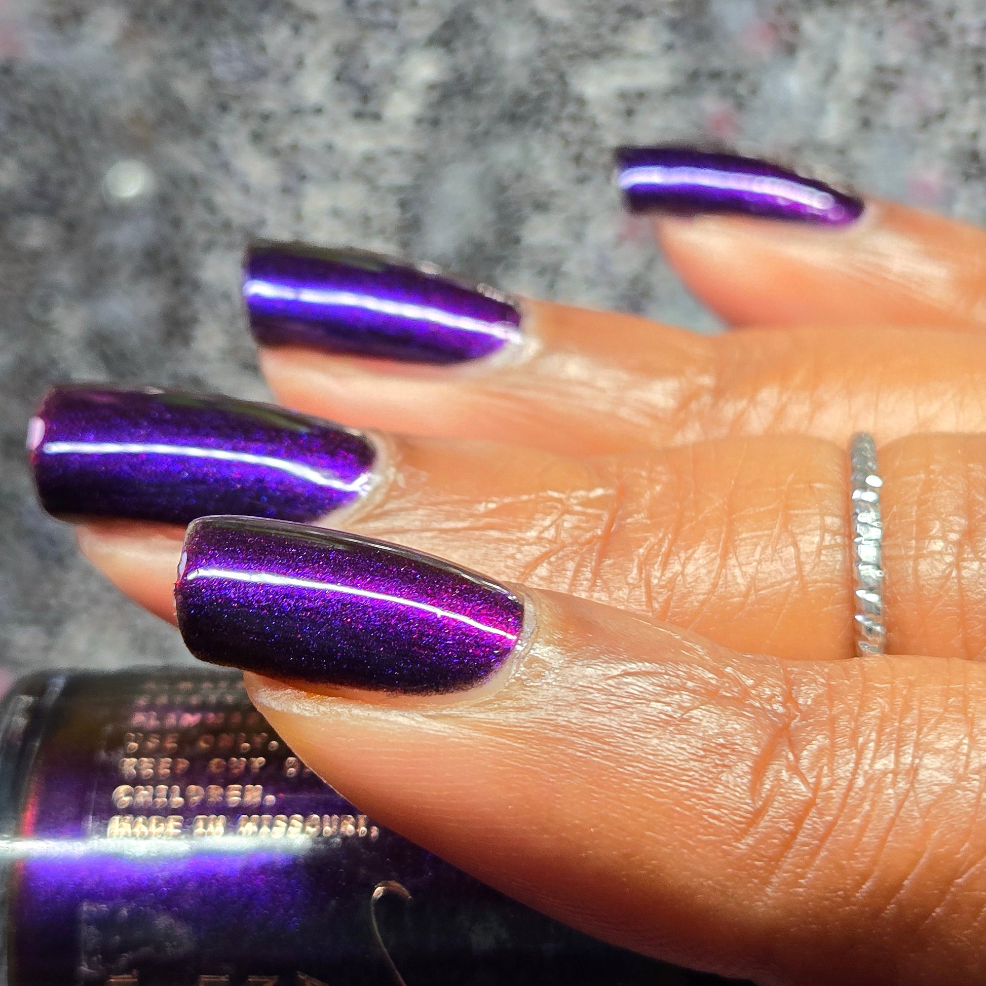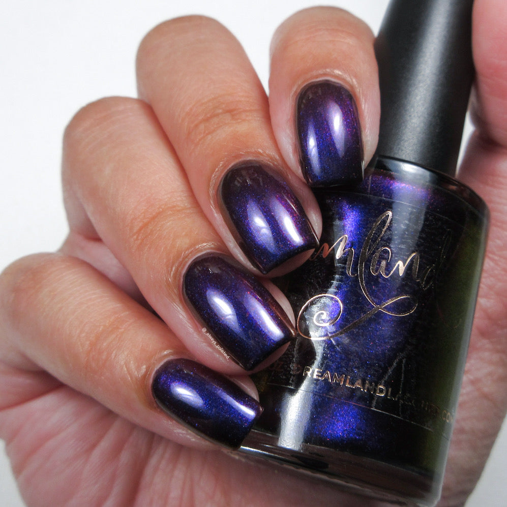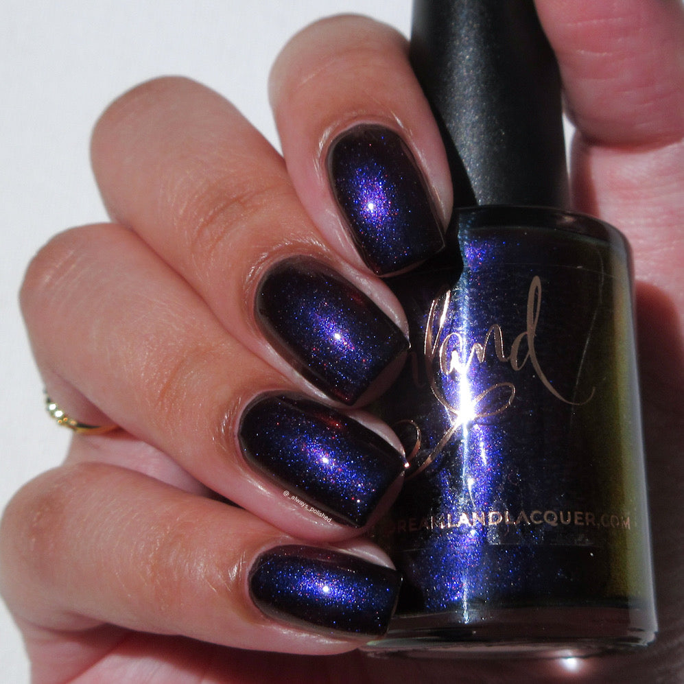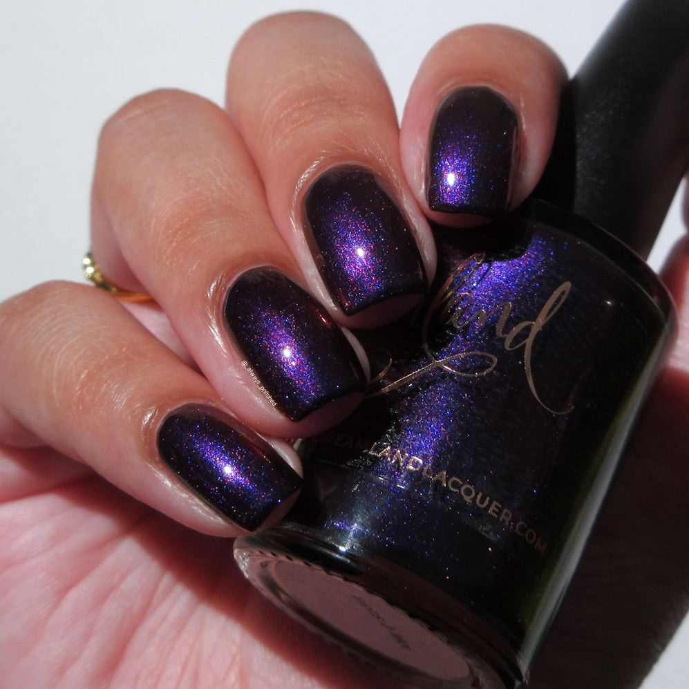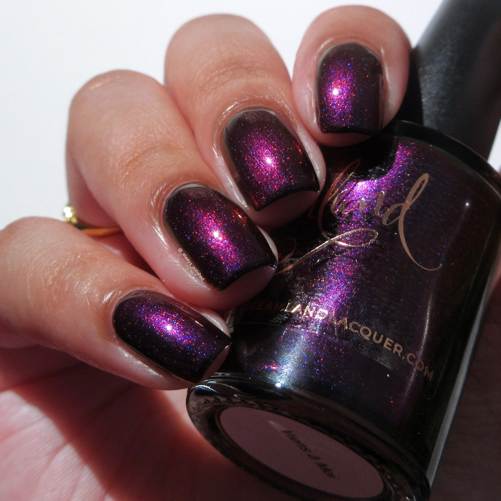 Inspired by Lestat from Interview with the Vampire, specifically as he is portrayed in the TV series (he is the Lestat I have dreamed of since I was 12!). Purple to black to red to orange multichrome. Dries smooth. No staining reported.