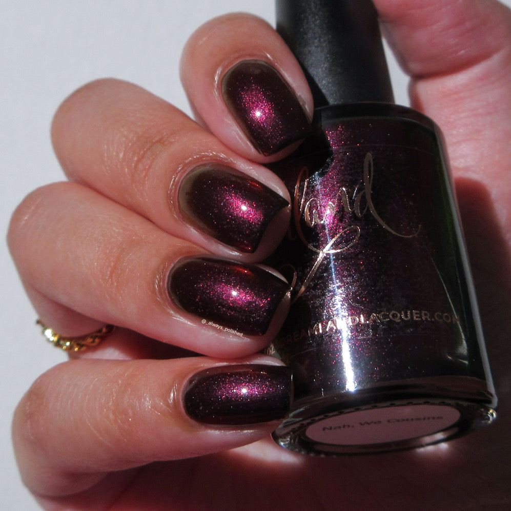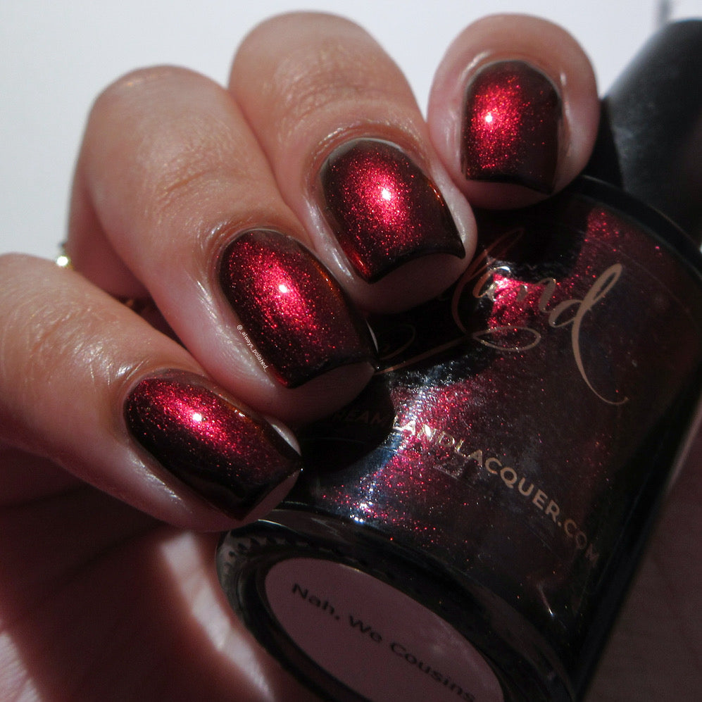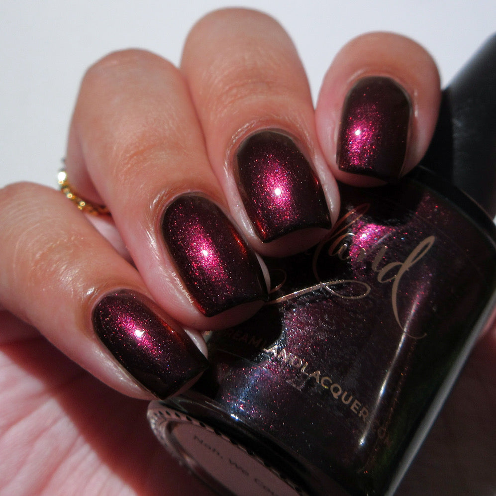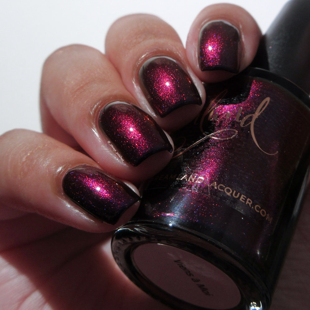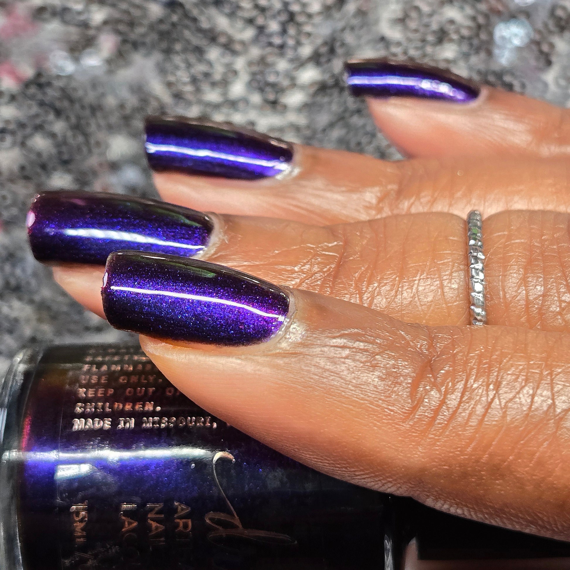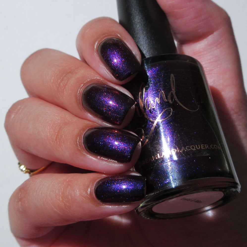 Inspired by Lestat from Interview with the Vampire, specifically as he is portrayed in the TV series (he is the Lestat I have dreamed of since I was 12!). Purple to black to red to orange multichrome. Dries smooth. No staining reported.
